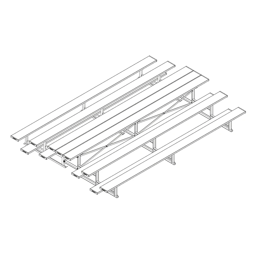 Two sided viewing stand. Place between adjoining fields or indoor courts for spectator viewing from both sides of the bleacher.