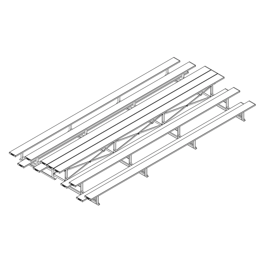 Two sided viewing stand. Place between adjoining fields or indoor courts for spectator viewing from both sides of the bleacher.