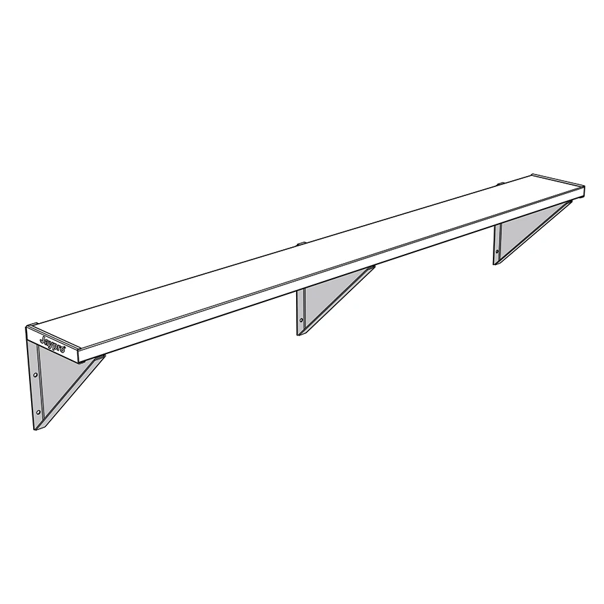 Wall mounted, rust-resistant aluminum bench ideal for locker rooms, aquatic centers, and outdoor applications.