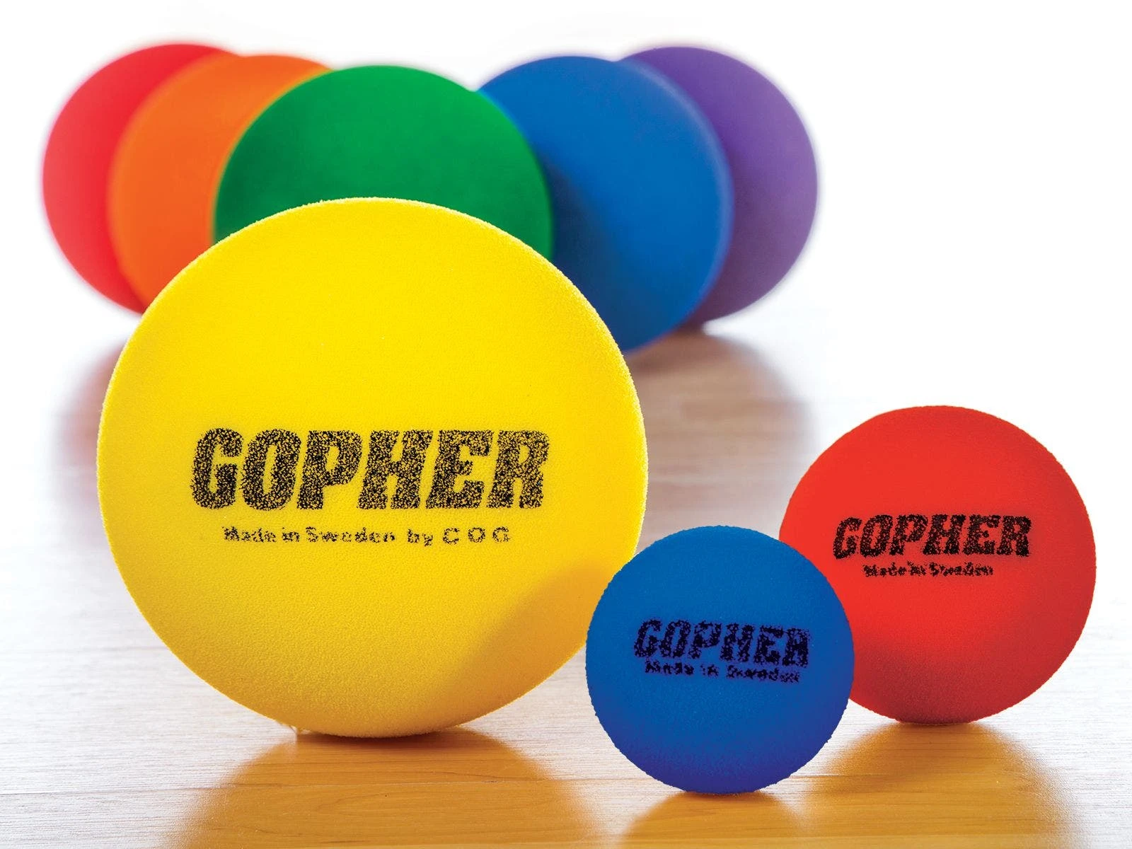 Whether using these balls for traditional sports or target games, they’re perfect wherever a lively ball with more bounce is needed! Plus, choose from three sizes to match up each student with the right ball. Rainbow colors aid students in tracking during flight and add a fun pop of color to almost any activity.
